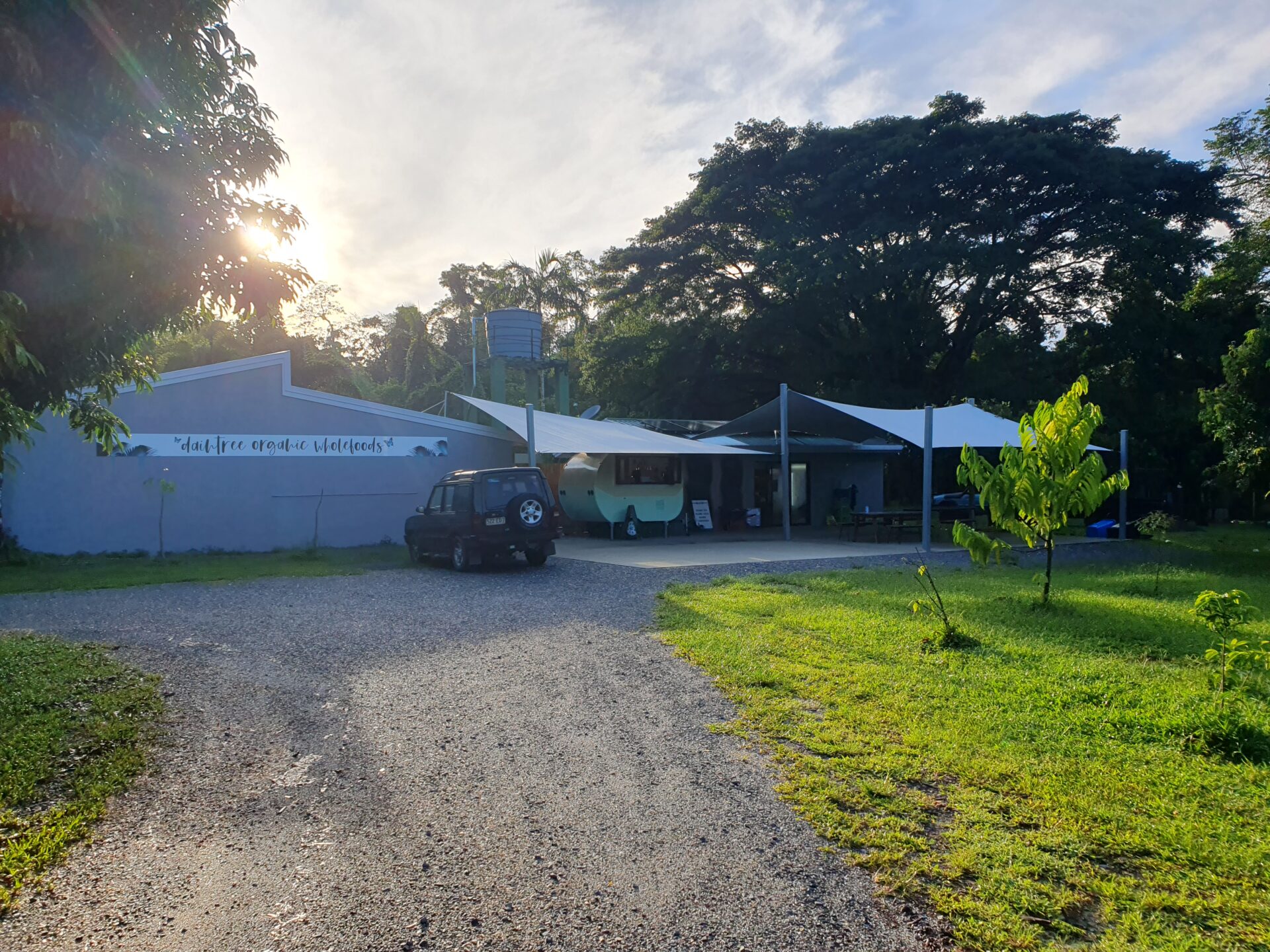 Organic coffee made with organic milk, organic wholefoods shop, local produce, organic fresh fruits and veggies, exotic tropical fruit for sale, organic ice-cream, organic drinks, freshly baked organic cakes & slices, organic hot pies (vegetarian, vegan, gluten-free options), souvenirs, Gallery of the Giant Fan Palms boardwalk & organic tropical fruit tree orchard all in the one place in the heart of the Daintree Rainforest.